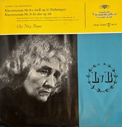 エリー・ナイ1882~1968はデュッセルドルフ出身も、Nの付く苗字はイタリアの家系でナポレオンとも由緒ありを伝えられていた。大戦時には国家社会主義政党への忠誠を示し政治的アナウンスにも積極的に活動、仏のアルフレット・コルトーも同じ路線、戦後なかなかつらい立場に居たようである。指揮者フルトヴェングラーは、司法的に非ナチ化裁定を獲得して戦後再活動するも1954年11月には不本意な病死をとげて、戦中のドイツ国内での芸術活動を考えるとき、エリー・ナイの芸術も同じくその点の考慮は必要であろう。特にナイのピアノ演奏は確固たるドイツ精神の発露であり、そのベートーヴェン解釈はLPレコード醍醐味も三本の指に数えられるべき音楽といえる。そのスタイルはギーゼキングとパラレルでノイエザハリヒカイト新即物主義と並行して称賛されるものである。スケールの宇宙的規模は息をのむほどである。
