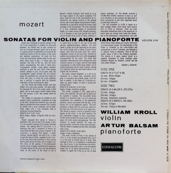ウィリアム・クロール(Vn)/モーツァルト:ヴァイオリン・ソナタK481,K379,K304