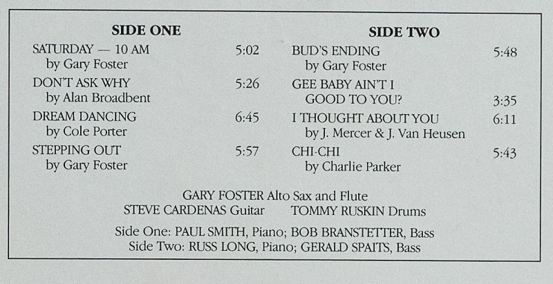 | 演奏者 | ゲイリー・フォスター(as) |
