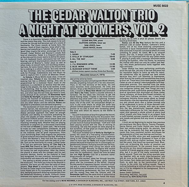 シダー・ウォルトン(p)/A NIGHT AT BOOMER'S Vol.2