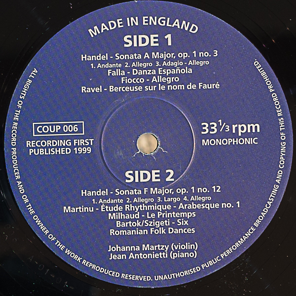 | 曲目 | ヘンデル:ヴァイオリン・ソナタ・イ長調作品1-3ほか |