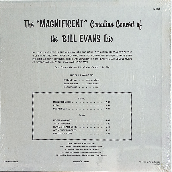 ビル・エヴァンス/THE MAGNIFICENT CANADIAN CONCERT OF(加)