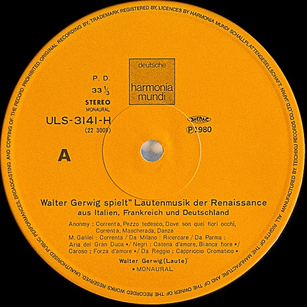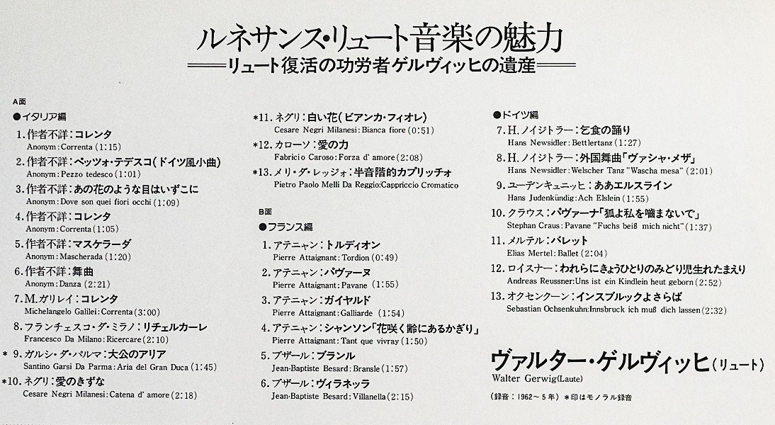 演奏者 | ヴァルター・ベルヴィッヒ(Lute) |