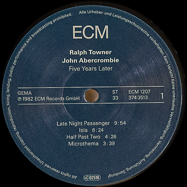 ラルフ・タウナー(g)/FIVE YERES LATER