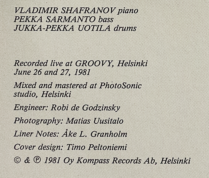 ウラジミール・シャフラノフ・トリオ/LIVE AT GROOVY(澤野工房)