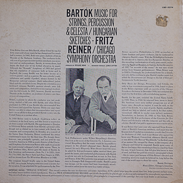 フリッツ・ライナー指揮/バルトーク:弦楽器と打楽器とチェレスタのための音楽