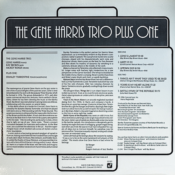 | タイトル | THE GENE HARRIS TRIO PLUS ONE |