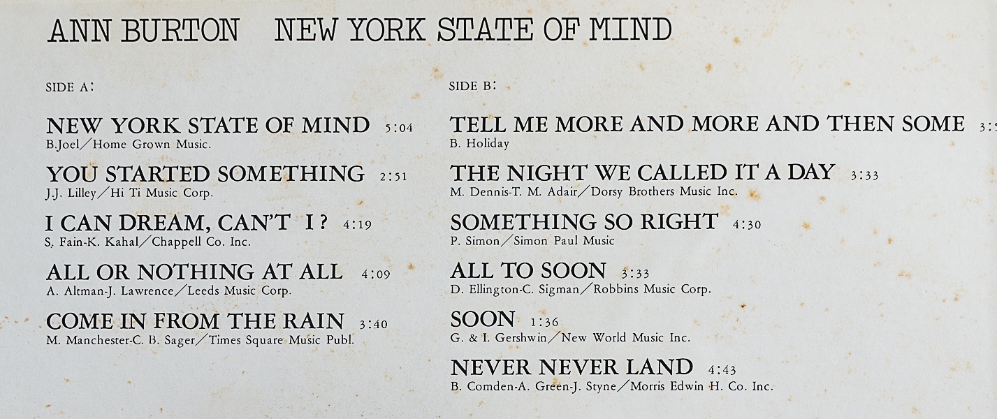 アン・バートン/ニューヨーク・ステイト・オブ・マインド