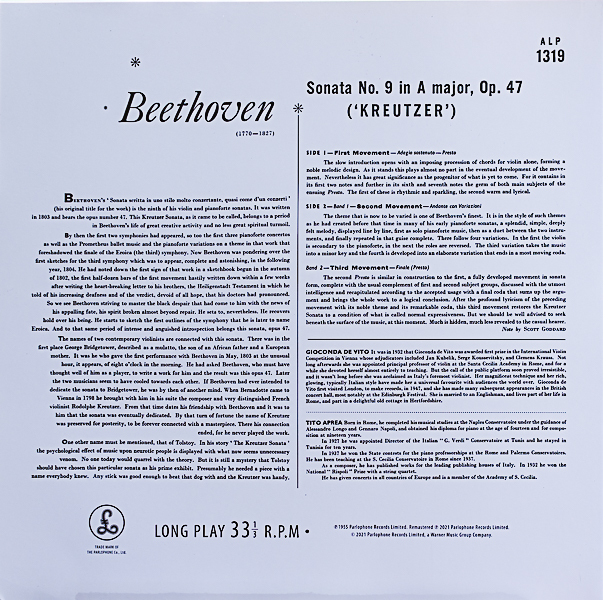 ジョコンダ・デ・ビート(Vn)/ベートーヴェン:ヴァイオリン・ソナタ 第9番イ長調作品47