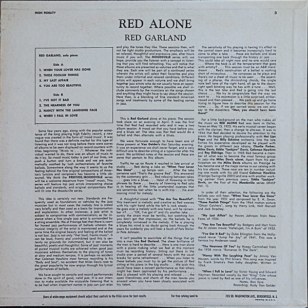レッド・ガーランド(p)/RED ALONE