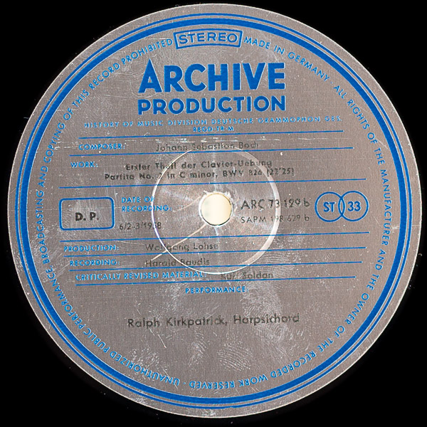 | 演奏者 | ラルフ・カークパトリック(harpsich) |