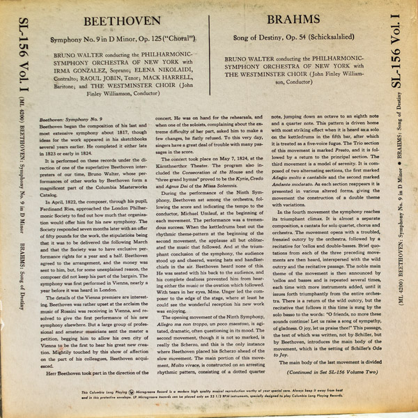 ブルーノ・ワルター指揮/ベートーヴェン:交響曲第9番ニ短調作品125「合唱付き」(2LP)